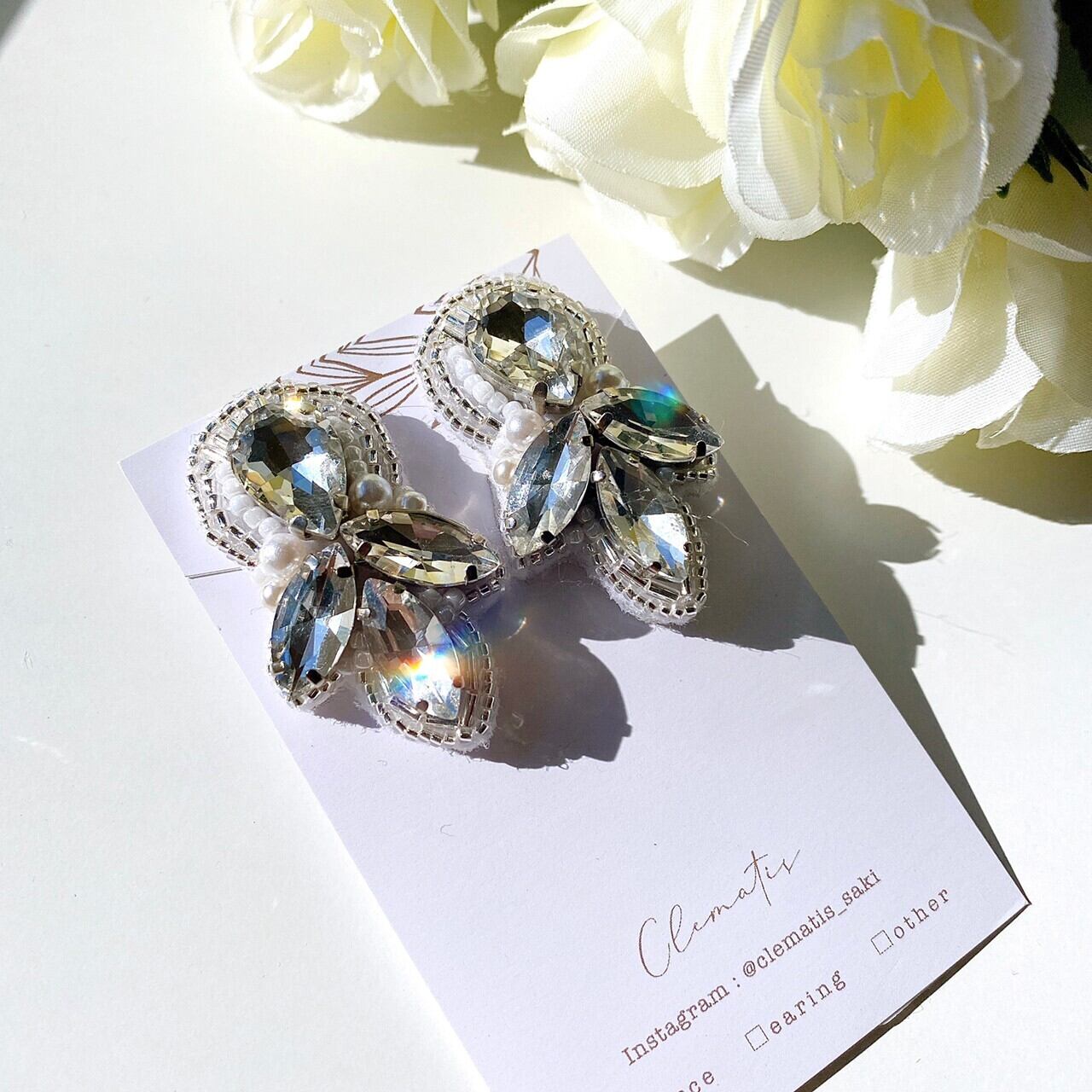 大きめビジューや手縫いのビーズで、存在感たっぷりです。