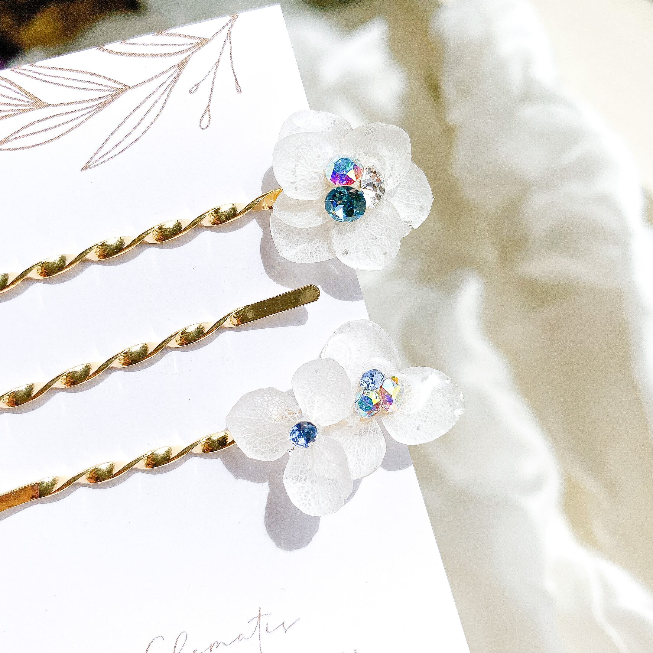 露の宝石をあつらえたヘアピンセットです。